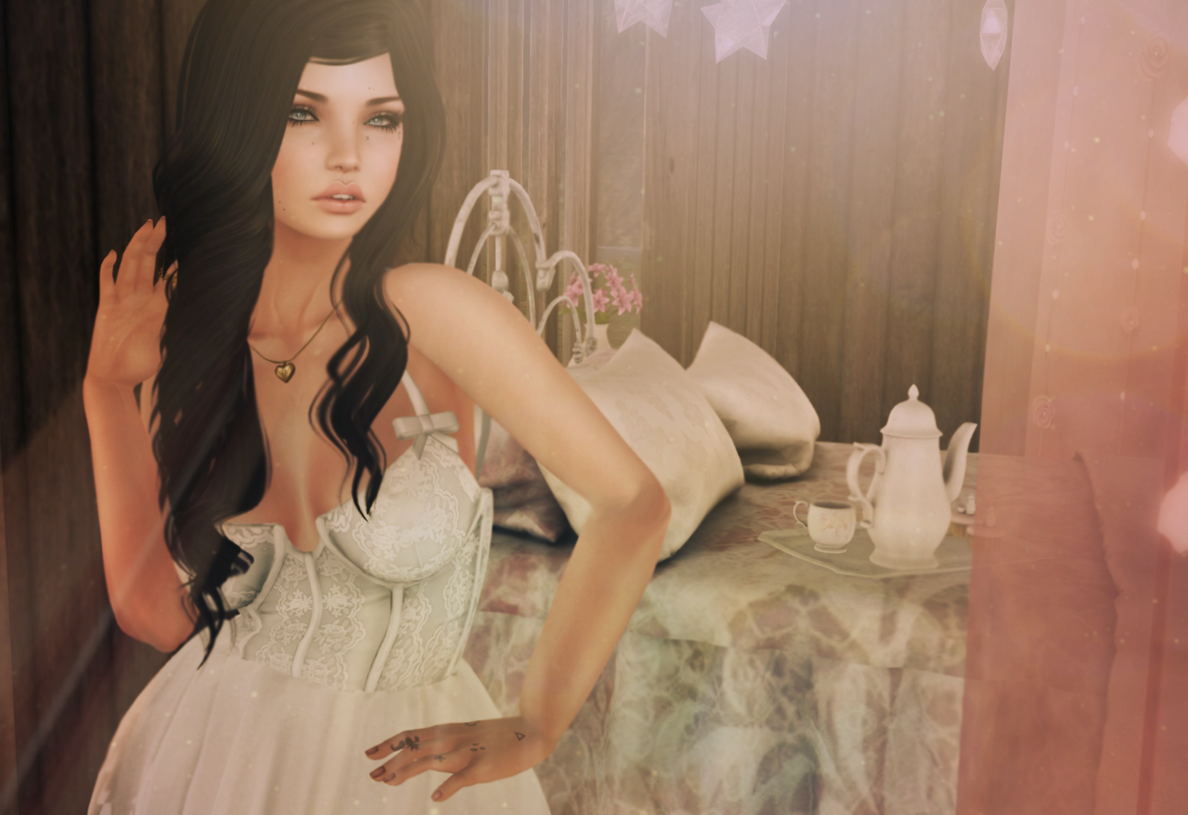 Moving on to some amazing releases from Kalopsia who has teamed up with Vagabond. This amazing bed/tea set situation is available at this round of Collabor88 and I am pretty sure I am obsessed. I love the texturing of the bed…no really. Obsessed. It’s so beautiful. There are both adult and PG versions available and truly…it’s just a beautiful thing. The hanging stars and flower vase are also available.