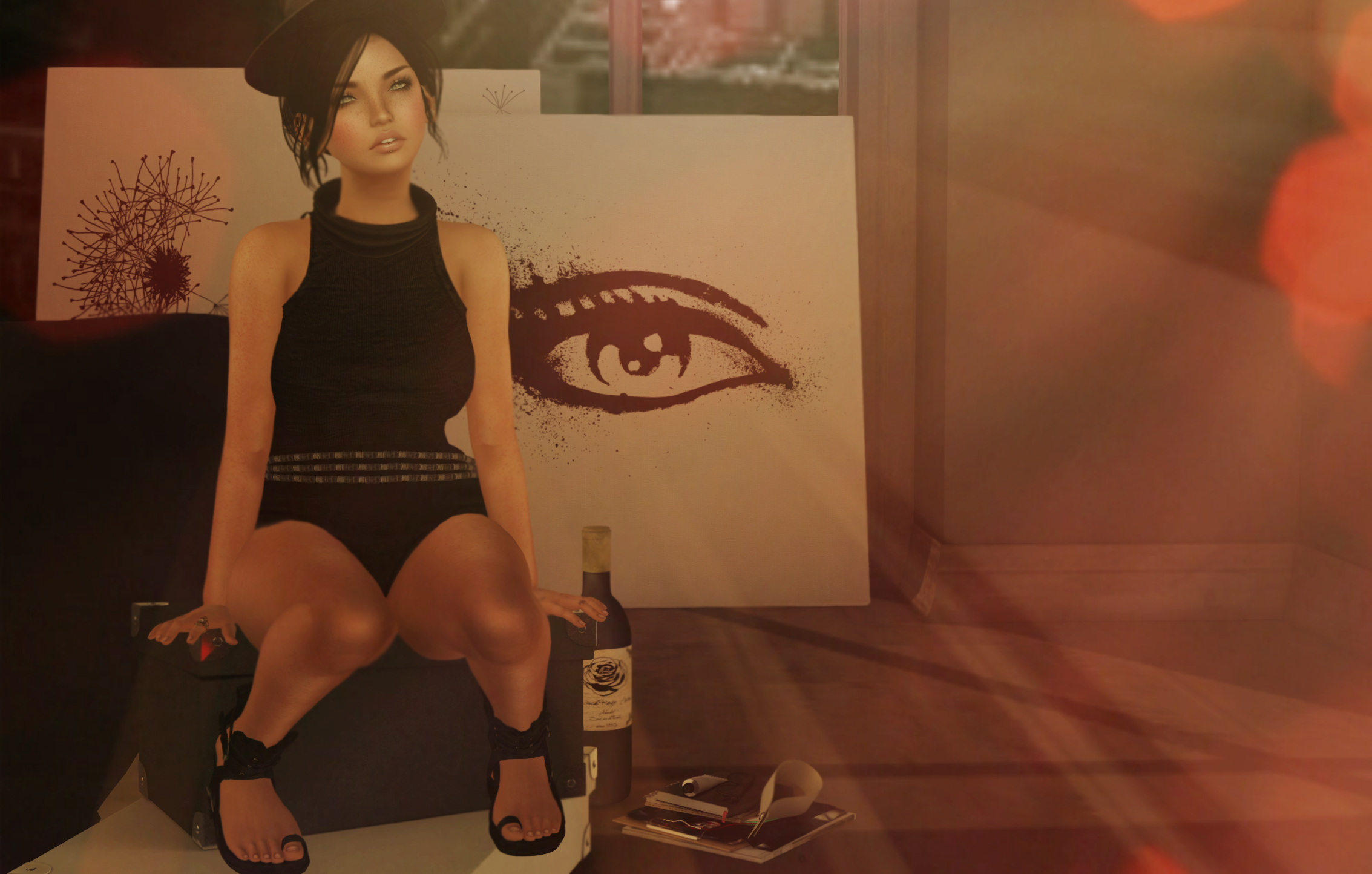 In other news, I’m showing off yet another release from -Pixicat-. I am in love with this top/skirt experience. I love this blue denim top with the leather texturing. I wanted to show off the front and back of this top because it’s really beautifully made. The lace skirt is also so beautiful. I love then belt and the layering. This is one of my most favorite releases from -Pixicat-. It’s available at this round of ~uber~ and comes in various colors. I’m featuring newness from Just Design, this release is for the July 1st round of FaMESHed. You can’t see them particularly well in this post, but I’ll be featuring them again with my ROMP posts, because they are pretty appropriate for naughty.